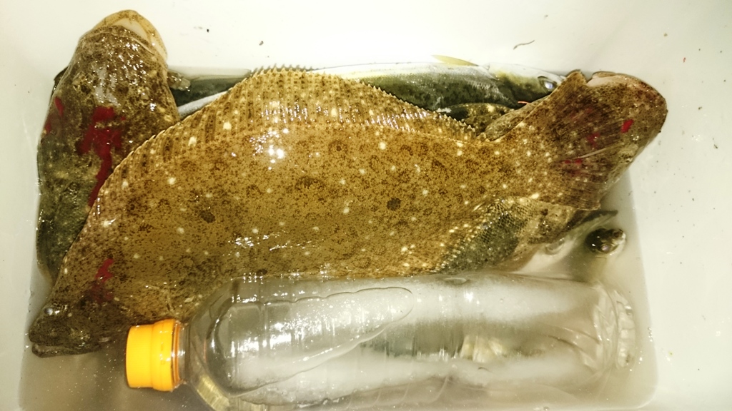 そうこうしているうちに動向した友人がルアーでヒラメをゲットしました。やはり上手な人には勝てませんねぇ~(;´Д`)流石です。