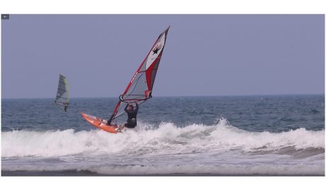 昼頃からは波もなくなり、代わりに南東風が微弱ながら吹いてきたのでウインドサーフィンへチェンジです。
