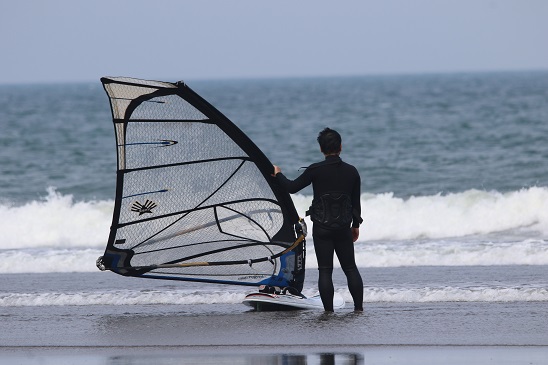 昼頃からは波もなくなり、代わりに南東風が微弱ながら吹いてきたのでウインドサーフィンへチェンジです。