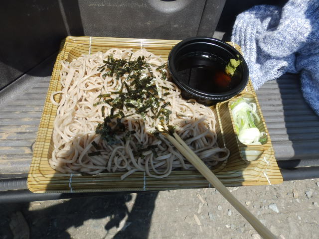 私も1ラウンドこなしてコンビニの「ざる蕎麦」で昼食です。この時期に野外での食事は最高ですねぇ(◍ ´꒳` ◍)b