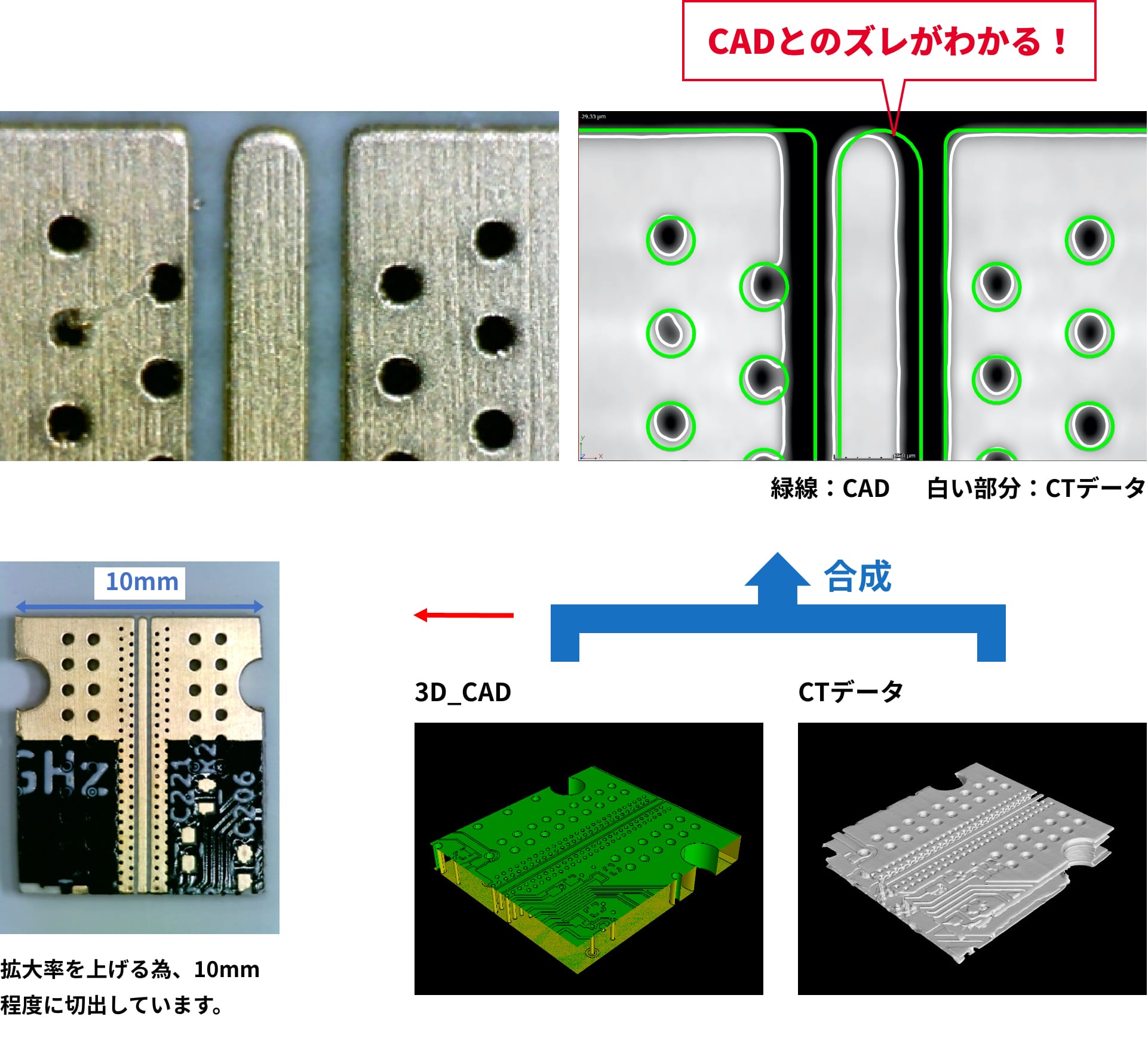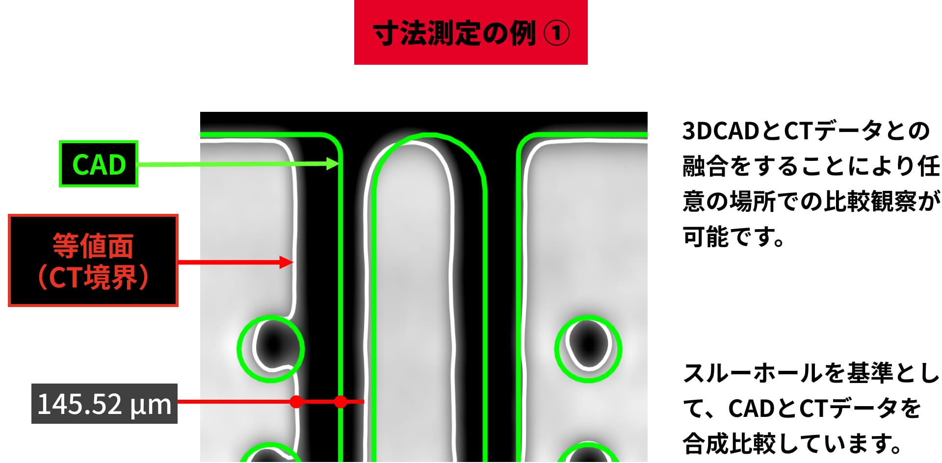 プリント基板のパターンについて3D_CADとCTデータを比較しました。